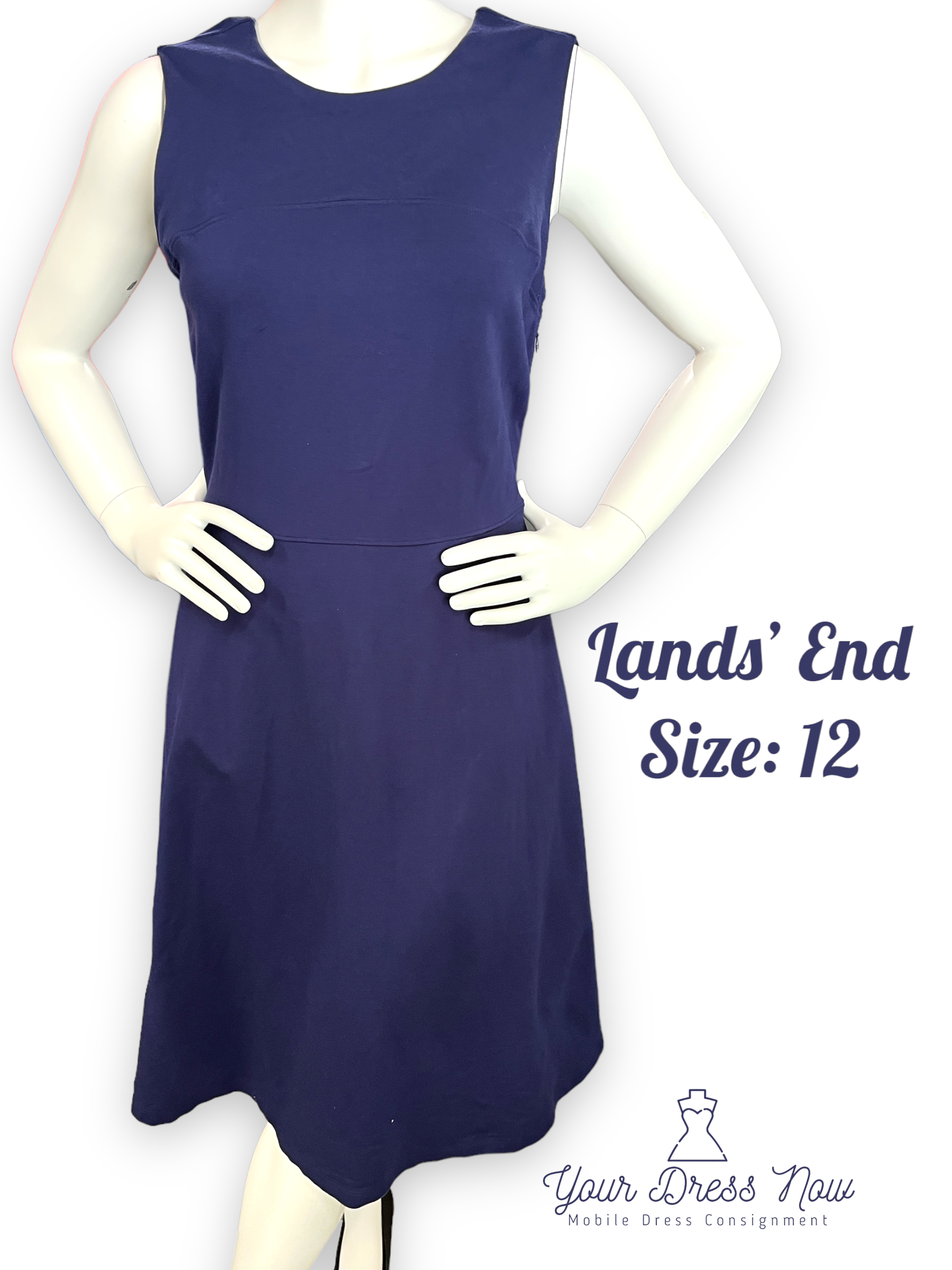 Stretchy, Versatile Navy Blue Dress, Lands' End, Size 12